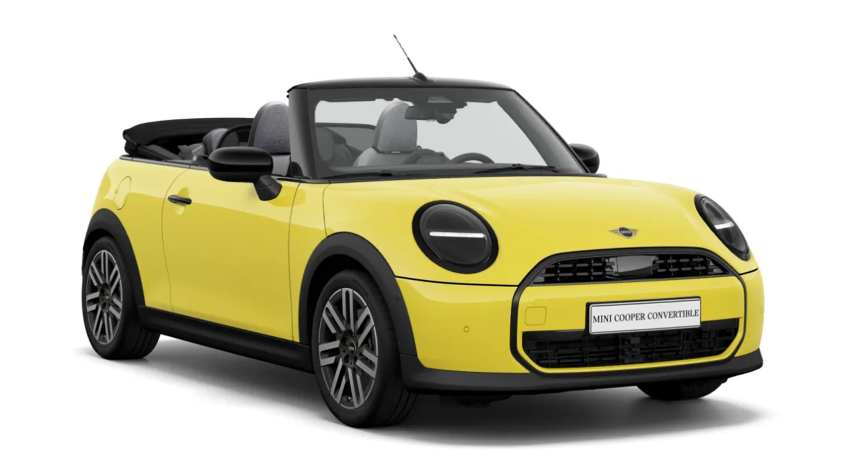 1Rental shown is for a 36-month Personal Contract Hire agreement for a MINI Cooper Convertible C Classic with Sunny Side Yellow paint and 17” Parallel Spoke 2-tone wheels. £4,251.22 initial rental, contract mileage of 24,000 miles and excess mileage charge of 9.5p per mile. Order by 05/01/2026. See full T&Cs.