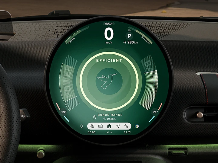 Simply ask MINI: "Hey MINI, activate the Experience Mode Efficient please." "Hey MINI, how far can I go?"