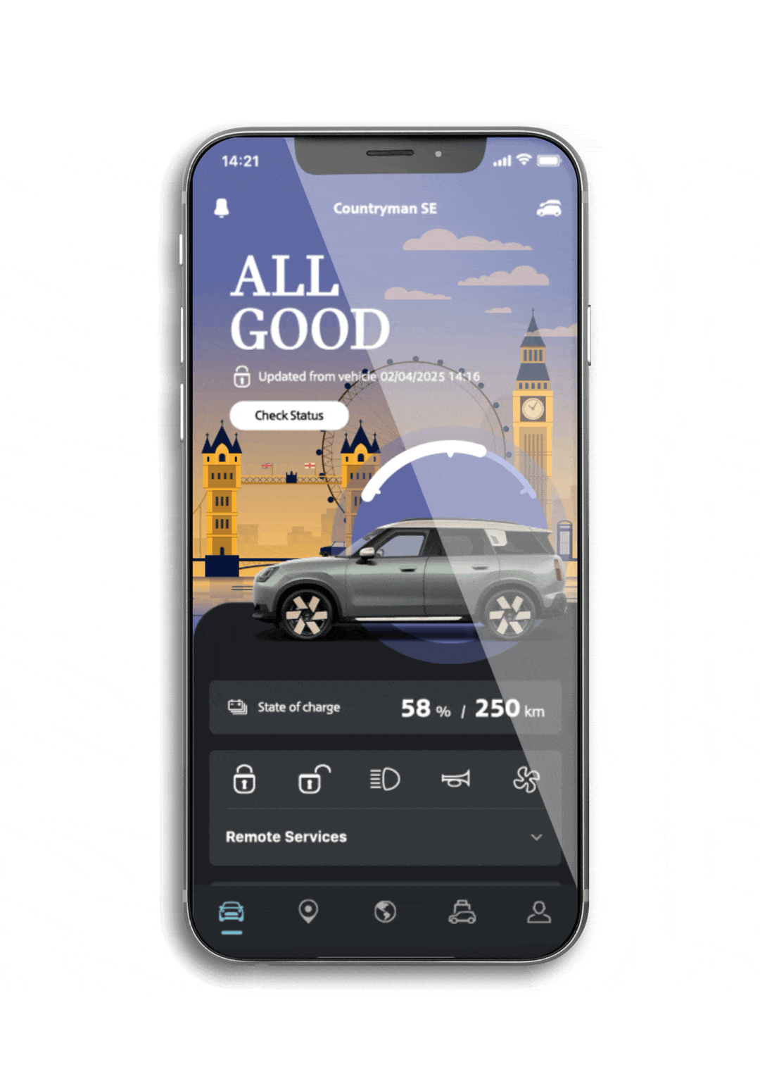 - Access detailed information about your MINI, including its current status and maintenance needs.