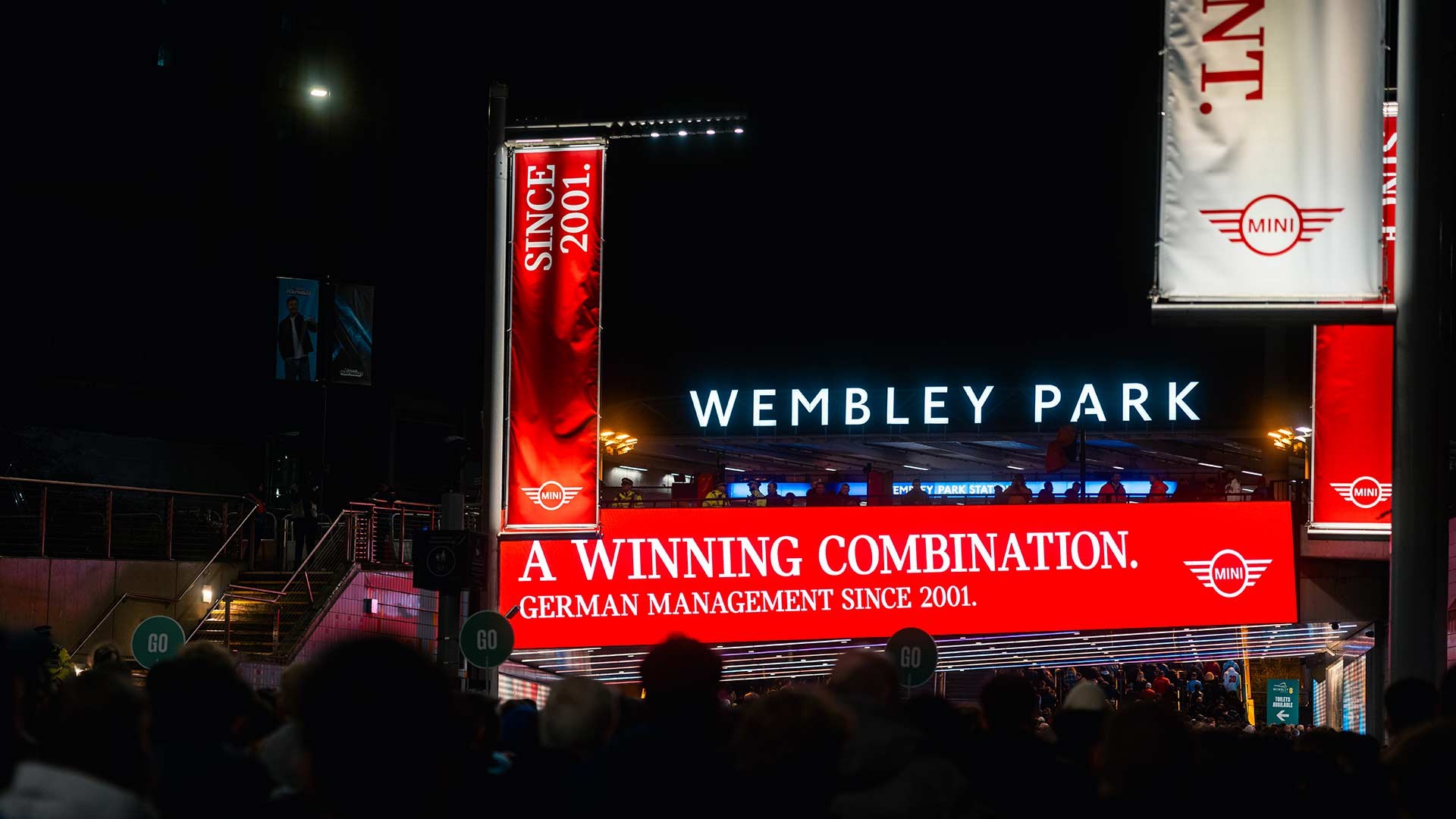 That’s the big welcome done, but this was a day for fans to get behind their new man too. We lined the legendary Wembley Way with words of support, as well as Box Park’s giant screen. Flags lined the stadium’s boulevard with messages such as “English Spirit. German Management” and “A match made in heaven” as we added to the pre-match buildup. What a fitting way to celebrate the winning combination of our own English heritage and German ownership.