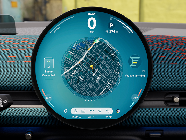 The standard MINI Intelligent Personal Assistant lets you control functions like navigation, phone, radio, temperature, and journey info – just with your voice. The system can be activated using the greeting "Hey MINI" or by pressing the push-to-talk button on the steering wheel. Best of all, you can choose between two avatars for your personal assistant: A stylised version of your MINI, or "Spike", MINI’s mascot, which is available at an extra cost.