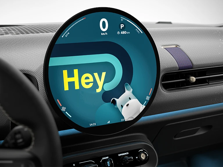 The standard MINI Intelligent Personal Assistant lets you control functions like navigation, phone, radio, temperature, and journey info – just with your voice. The system can be activated using the greeting "Hey MINI" or by pressing the push-to-talk button on the steering wheel. Best of all, you can choose between two avatars for your personal assistant: A stylised version of your MINI, or "Spike", MINI’s mascot, which is available at an extra cost.